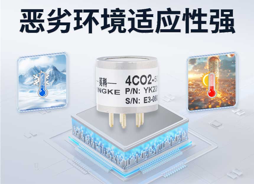 YK221红外二氧化碳气体传感器利用非色散红外原理技术(NDIR)对空气中存在的CO2进行信号采集,该传感器性能优良、稳定性好,传感器内置温度补偿功能。